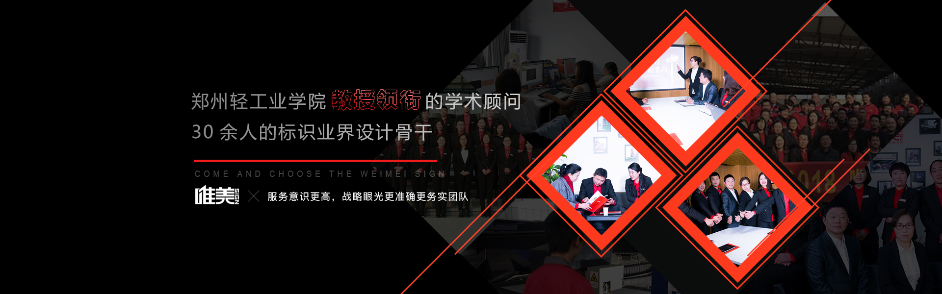 鄭州唯美標識設計制作有限公司是一家集標識系統(tǒng)開發(fā)、設計、制作、安裝、售后服務于一體的專業(yè)化標識公司。 13年專注標識行業(yè)定制服務,已成為地產(chǎn)住宅、商業(yè)廣場 、商辦公務、醫(yī)院系統(tǒng)、學校文化、工業(yè)園區(qū)、旅游景區(qū)、酒店餐飲、銀行金融等多個領域的提供標識系統(tǒng)解決方案公司。